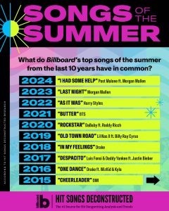 Hit Songs Deconstructed partnered with Billboard to provide an analysis of what Billboard's top summer hits of the last decade have in common.